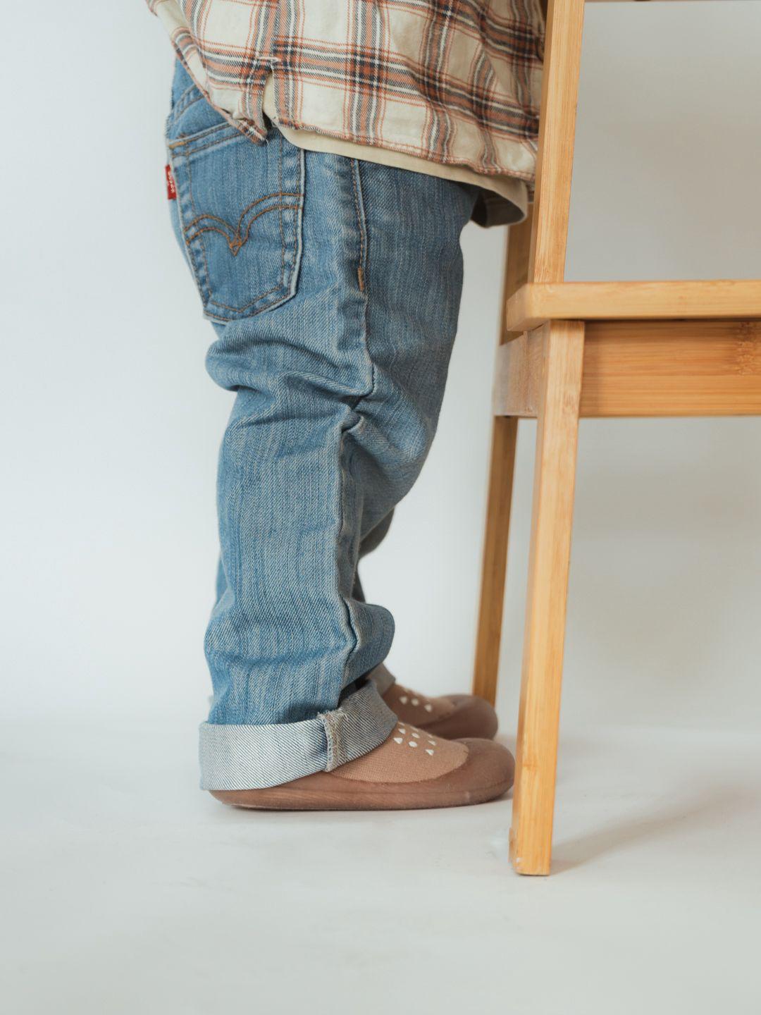 Zapato ergonómico para bebé que interfiere mínimamente con las estructuras del pie.