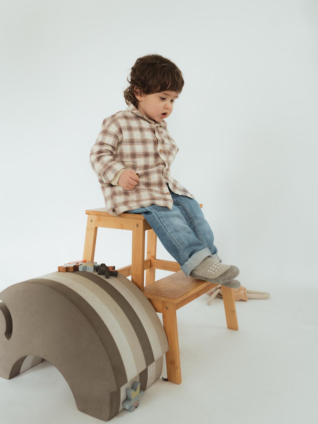 Zapato ergonómico para bebé que interfiere mínimamente con las estructuras del pie.